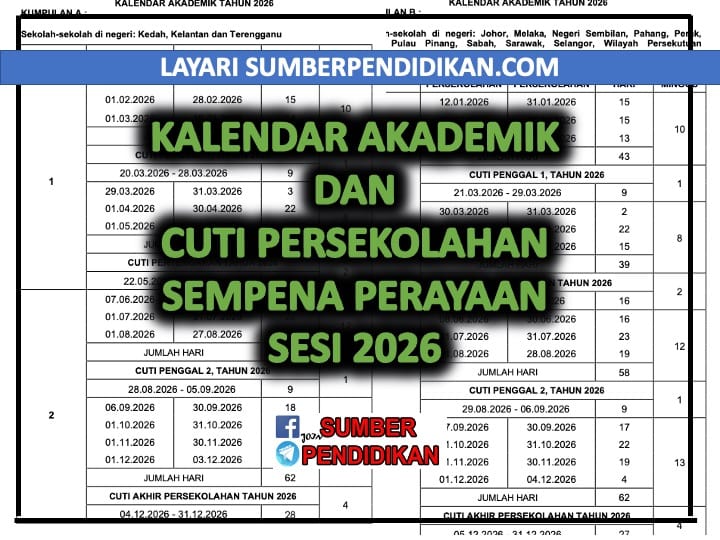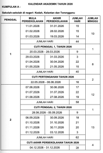 Perkongsian berkenaan dengan takwim persekolah, cuti sekolah, cuti penggal dan cuti sempena perayaan bagi kalendar akademik sesi 2026.